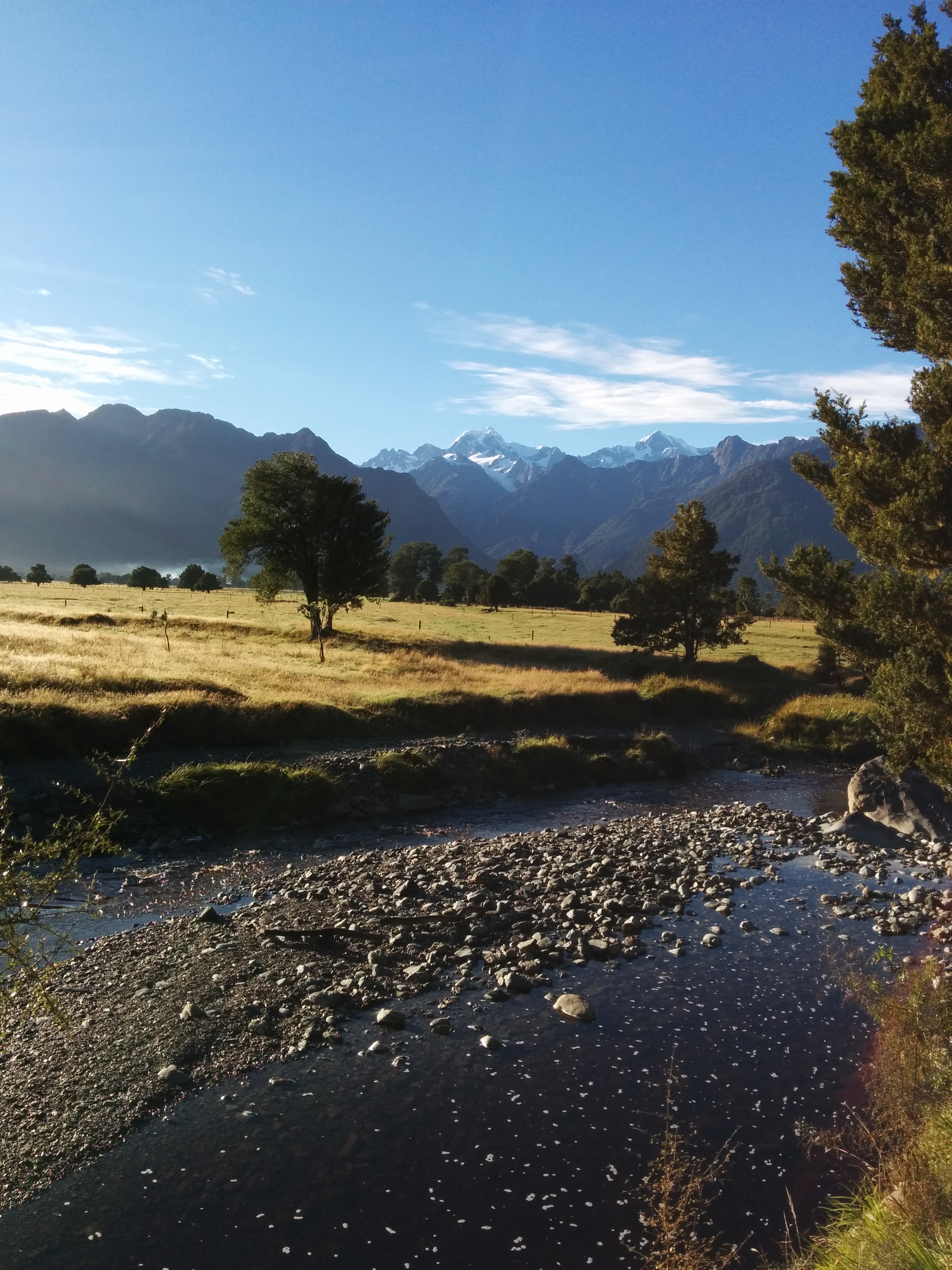 Gestern fuhren wir früh morgens von Franz Josef nach Wanaka. Diese Strecke war von der Landschaft her bisher die schönste! Gleich zu Beginn machten wir einen kleinen Stop, um den höchsten Berg Neuseelands, den Mount Cook, und den Fox Gletscher fotografieren zu können. Wie jeder Berg in Neuseeland hat der knapp 3800m hohe Mount Cook einen maorischen (Aoraki) und einen englischen Namen. Die Maori benannten die Berge nach ehemaligen, großen Stammesvätern. Ähnlich wie für die Aborigines ist es auch für die Maori unglaublich respektlos, auf die Gipfel der Berge zu klettern.